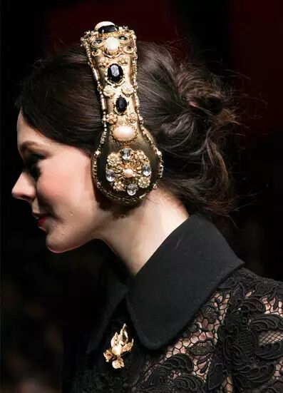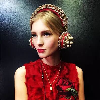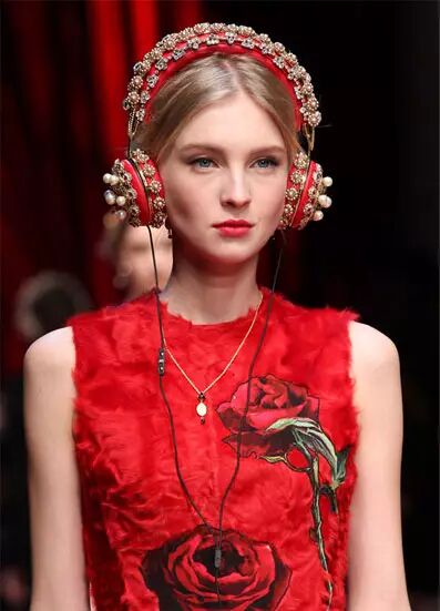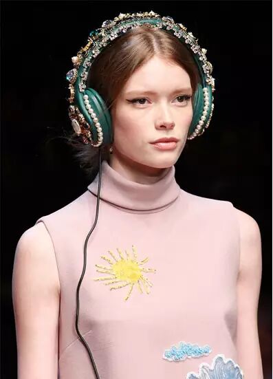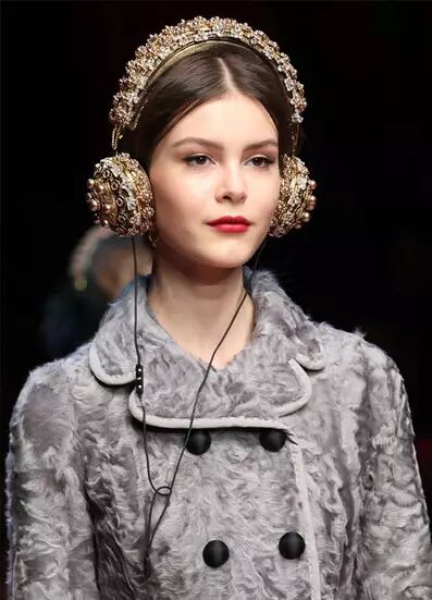 3月1日,意大利米兰,Dolce & Gabbana 2015秋冬发布。本季秀场上的一大亮点就是引人瞩目的奢华耳机。这么华丽的耳机还真是头一次见,闪着金光的、镶着珍珠钻石,每一个都精妙绝伦。管它什么音质,Dolce & Gabbana只要美美美。
