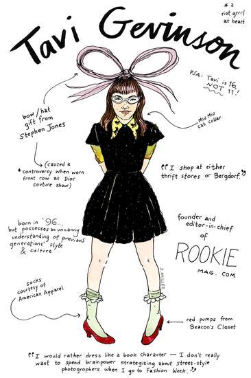 她是美国最年轻的时尚博主、少女偶像。12岁的Tavi Gevinson在2008年3月开始写自己的博客"Style Rookie",后来被《Teen Vogue》力捧,一时红透网络和时尚圈,她可能不是最有影响力的那个,但是她得风格和她追求梦想的精神鼓舞着非常多想在时尚圈有一席之地的少男少女。