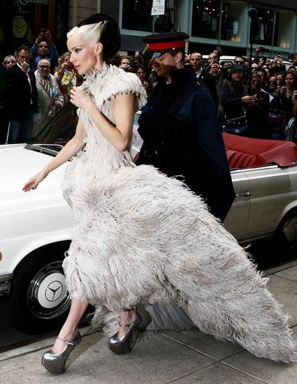 Daphne Guinness生来名媛,英国黑啤酒家族Guinness Family的继承人,19岁那年嫁给了希腊船王之子Spyros Niarchos,离婚后投身于时尚事业。当然你可能会说,因为她有钱所以她可以实现想做的任何事情,但同时你也不得不承认,若是没有她独特的时尚品味还有无限的激情和热情,她也不会有这样的成就。她时时尚偶像、高级定制服收藏家、设计师等等,她得高跟鞋永远是吸精的焦点。
