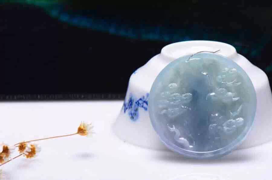 一天,尹文达突见屋顶一线天光之下,石上闪出翠绿色的光斑,便将此玉解开,竟是一块艳绿色的上等翠玉!他将玉石做成一盏碧玉宫灯,挂于水映寺中,顿时碧彩映射,整个殿宇熠熠生辉。剩余的制成耳片出售,透绿轻薄,一时行情大涨,“绮罗玉”蜚声玉林。