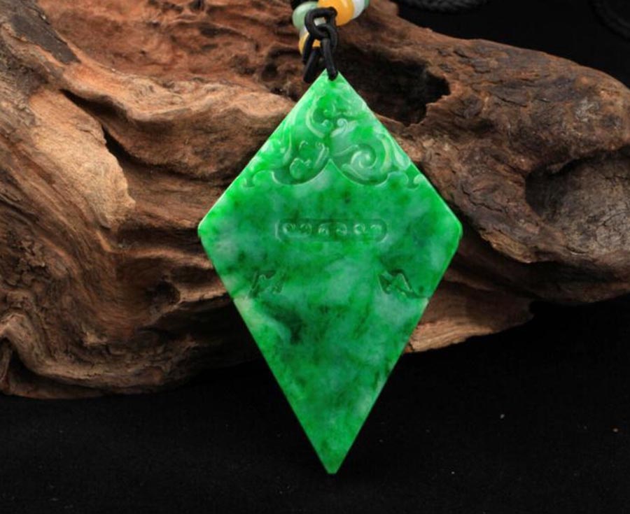 关于翡翠的由来,有这样一段传说。相传,古时南方丝绸之路的马帮从缅甸一带运木材、香料回中原,一匹马的马垛不平衡,赶马的商人顺手在路边捡起一块石头,压在马垛一边。直到进了中原,卸下货品,这块石头也完成了任务,被顺手扔在路边。不知道多久以后,一个碾玉的师傅从此路过,远远地看到阳光下一块绿色晶莹的东西,走近拿起来细看,又不见了绿色光芒,只是一块灰白色的石头,中间微现出绿丝。师傅左看右看,仔细端详,心想也许这是块璞玉吧?待他拿回去切开玉一看,他被惊呆了,这样鲜艳、晶莹、润泽的好玉是他一辈子也未见过的,这就是后来的翡翠。