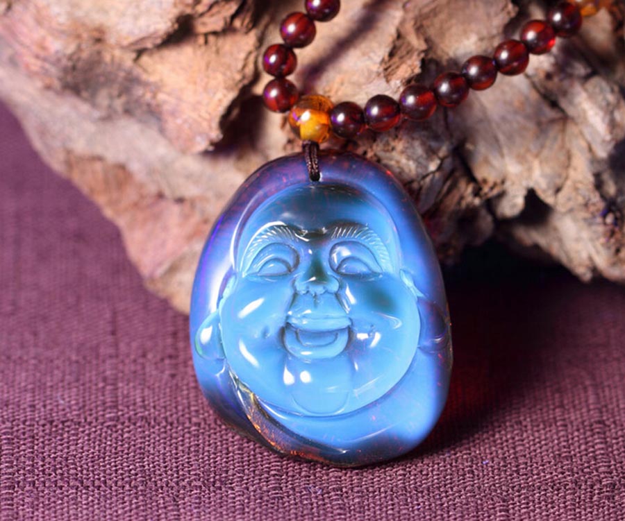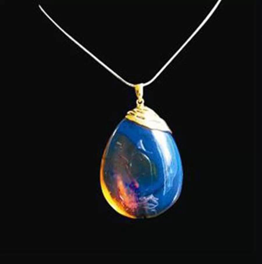 即便只是单一色彩的普通蓝珀,在不同光线下亦会呈现截然不同的色彩变化,就如同魔术般的令人目眩神迷。整体上,蓝珀的体色为淡黄色,对着光的表面呈蓝色,这种蓝色在太阳光或明亮的白光下更为明显,而且蓝色会随着光的照射角度的变化而灵活的移动。