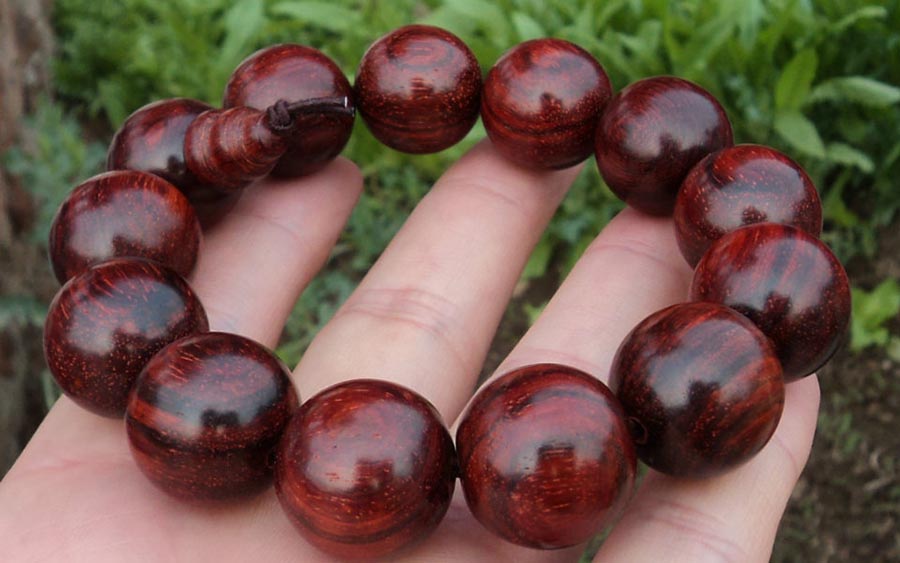 我们在挑选印度小叶紫檀手串时,不要一味地追求金星和纹路,密度和油性才是挑选小叶紫檀最基本的条件,而那些金星和各种纹理都是锦上添花,油密没有了就不是真正的紫檀了,所以在挑选时要尤为注意!