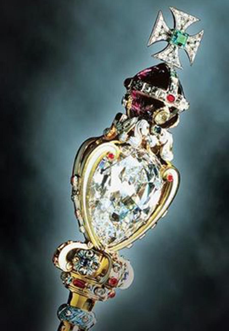 “库利南第三颗”为梨形,重94.4克拉,镶在英女王王冠的尖顶上。