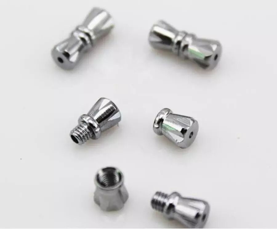 这种接扣通过弹簧片卡入槽中固定,外形可以装饰,做成镂空的或者镶嵌个宝石在上头,创意随便你发挥。形状可圆可方。
