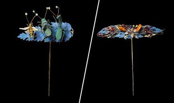 花丝、点翠、烧蓝各种高阶经典传统工艺全部招呼起来,祥云、喜字、花草这类吉祥如意讨人喜欢的图案一个都不能放过。