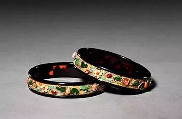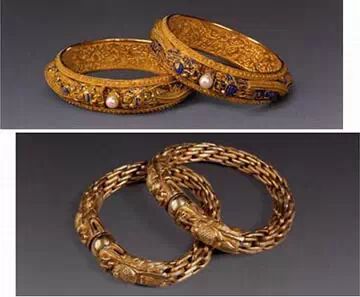 想到手镯,马上想到翡翠和白玉是不是?宫廷收藏当然得有,虽然并不是咱心心念念的老坑玻璃种帝王绿or极品羊脂玉,好吧人家成双成对还雕了花,皇家出品还是有够精致的说。