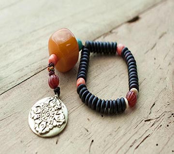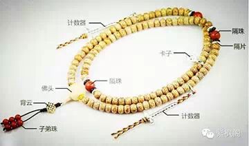 按照藏传佛教的传统,计数器不应直接栓在佛珠的珠线上,而要在珠线上穿入小环,再将计数器穿在环上。