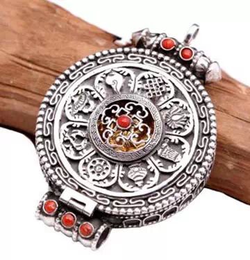 八卦九宫咒轮牌与天珠、天铁、嘎乌、绿松石、琥珀及珊瑚一起,为密宗的“辟邪七宝”。