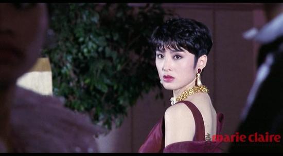 张敏《与龙共舞》剧照在香港电影鼎盛时期,张敏是演戏最多的女星,张敏拍过几十部片子,在她与周润发、周星驰搭档的电影中的出色表现刷新了香港电影票房记录。她在《与龙共舞》中扮演更是成为一代男影迷的“梦中情人”。俏丽干练的短发在当时引起了新风潮的涌动,酒红色的露肩礼服和珍珠宝石的长耳坠完美的搭配结合。轻轻回眸的一刹那,所有的一切将如初梦。