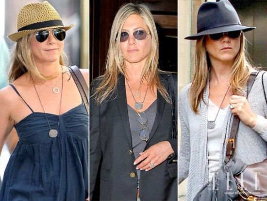 你以为身为天后的她应该时时珠光宝气吗?错了,来看看安妮斯顿的星期日“懒惰”造型,银灰色的金属项链叠带短项链就是她的全部了,不过谁说这不时髦呢?