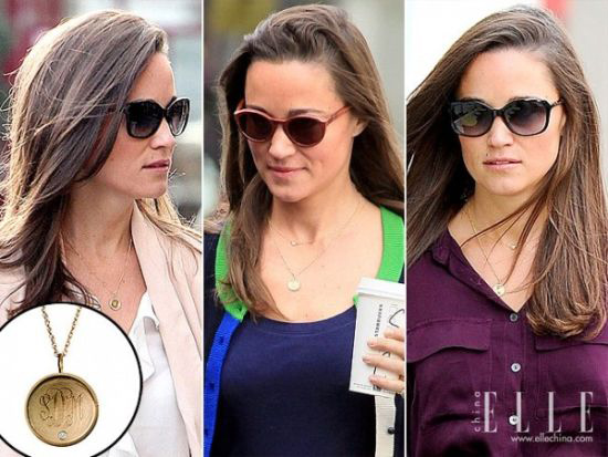 王妃的妹妹皮帕是媒体们最新追逐的英国IT girl,这款复古的圆形项链也是她近期的挚爱,佩戴频率相当高。