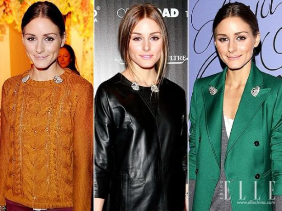 要说是领夹更不如说是胸针改造的,这对复古胸针来自Olivia Palermo的妈妈,果然Vintage的装扮在妈妈奶奶们的衣柜里就能找到。