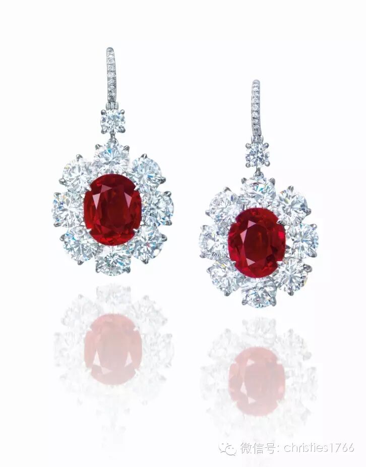 4.25及4.18克拉緬甸天然鴿血紅紅寶石及鑽石耳墜