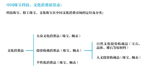 由NGTC、凤凰卫视、《完全时尚手册》、北京国际设计周、中银理财、诺金集团和BASELWORLD联合推出的《2015中国文化消费市场白皮书(珠宝和腕表类)》明确提出了中国珠宝科技、文化消费的定义及分类: