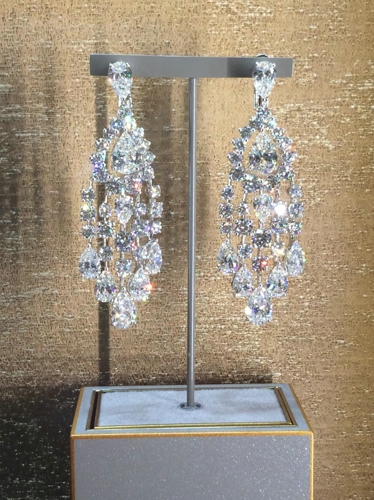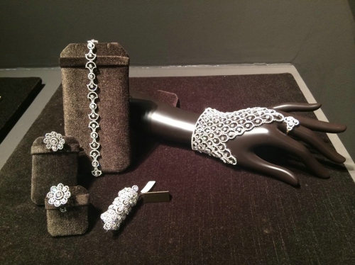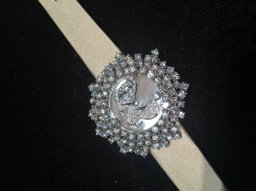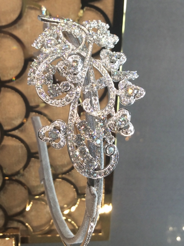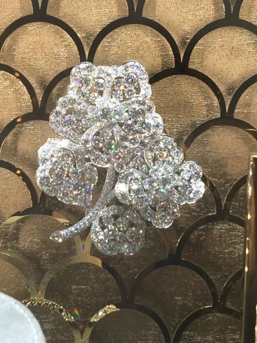 钻石永远是女人的最爱,那么一大串钻石的套链加上BLING BLING的耳环、以及那颗大的吓人的戒指,有没有发现之前看到的钻石都弱爆了? 注意到上面的花形钻石胸针了吗? 每一片叶子都会动,没有什么比会跳舞的钻石更加闪耀了!