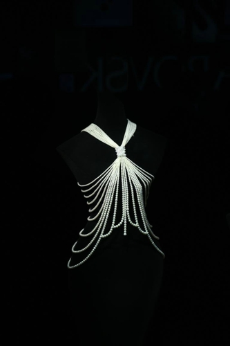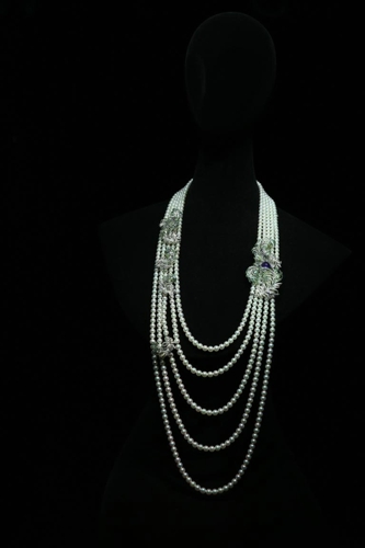 可穿戴的珠宝——珍珠是最适合穿戴的珠宝之一,因为圆润的质地,不会对身体造成任何损伤,富有生命力的珠宝,与人体的关联极为密切,这件可以穿戴的珠宝,是MIKIMOTO今年的杰作,据工作人员介绍,穿戴上它至少需要3个小时的时间。