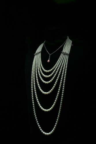 渐变的专注——这条珍珠的设计看起来极为简单,难就难在所有的珍珠颜色的渐变是极难得寻找和搭配的,每颗珍珠的颜色、大小、光泽、渐变幅度都要符合整体感觉,纯天然的珍珠要完成这样一件作品,必然是需要大量的时间。