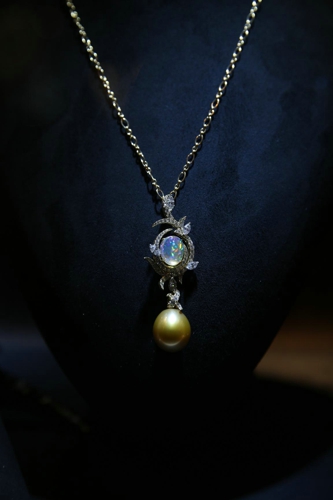 欧泊与金珠的搭配,两个有生命力的珠宝的结合,打造出生命之光。