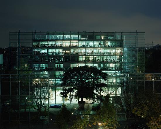 从1994年起,卡地亚当代艺术基金会离开其原来位于凡尔赛附近的场地Jouy-en-Josas,定址于巴黎的城市中心,其整体建筑由建筑师让-努维尔(Jean Nouvel)设计。建筑虽然离城市中心的热闹街道很近,但与围绕它的公园的完美交融,使得它像一片位于城市中心的绿洲。建筑的玻璃结构像由许多窗户和镜子组成,这种结构可以反射出布置在室内的艺术品,也能反射室外的天空。随着时间、气候和天空的变化,玻璃结构也会改变其色调。室内外的交流和平衡关系,使得基金会被称作"镜子之宫廷"。