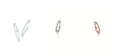 18K白色黄金钻石手镯 (左)18K白色黄金戒指 (右)18K玫瑰色黄金戒指