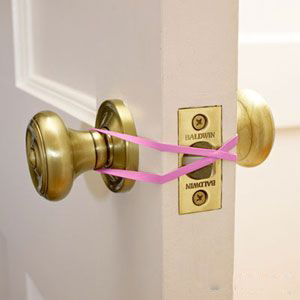 出门怕带上门锁了,又不想开着门怎么办?一根橡皮筋就解决了。