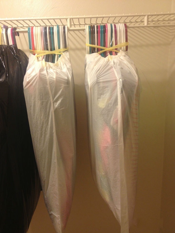 换季衣服怎么收纳?用塑料袋套着,方便又不用怕积灰。