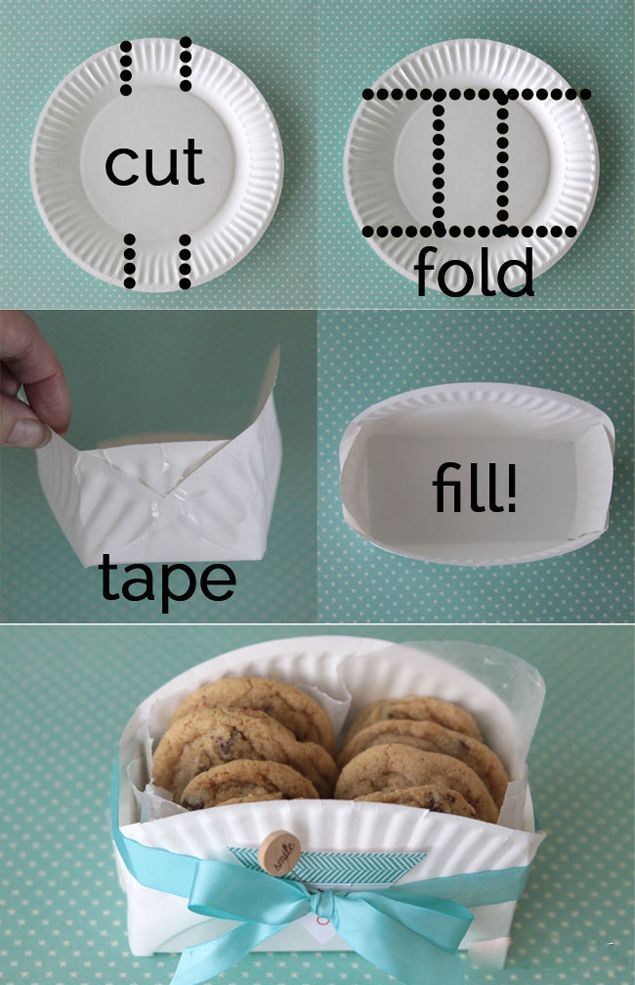 过生日剩下的纸盘子用来干什么?剪一下就能当饼干盒。