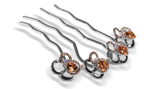 【新愿】--此款新品首次加入转动元素,更显灵动与曼妙。镂空与块面的组合叠加,带出头饰产品中少见的通透感。