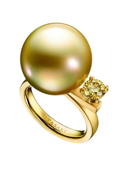 TASAKI balance noble ring平衡绚金戒指由TASAKI缅甸养殖场精心培育的金黄色南洋珍珠及缅甸黄金为设计,明亮、高雅,让人过目不忘。金黄珍珠与黄金的美妙搭配,犹如夕阳将大地染成了金黄色,也让人联想到夕阳照射下波光粼粼充满神秘的大海的景色,充满魅力的黄金在我们的手中散发出光芒,夺目动人。