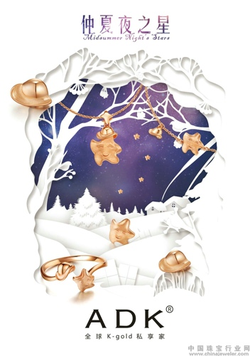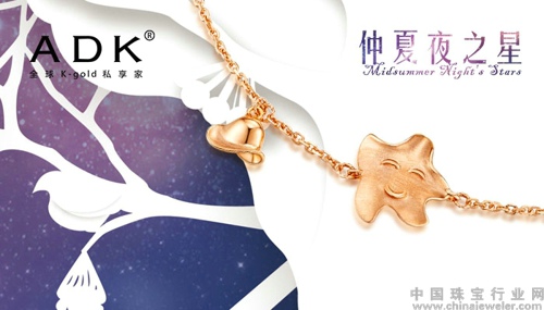 青春、美丽、时尚、优雅、甜美……无论哪种风格,都是每一位女性对活出自己风采的追求,为什么大家都爱童话,只因为它简单却唯美。这个夏天,ADK用轻生活的时尚K-gold呈现了一个梦幻的夏日世界,让你青春靓丽。2015年ADK专款“仲夏夜之星”系列新品已在全国ADK各大店铺活力上市,更有超值活动倾情呈现,欢迎到店鉴赏!