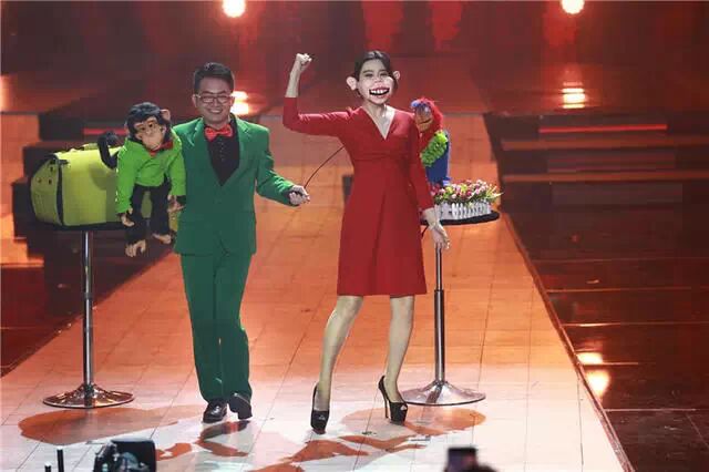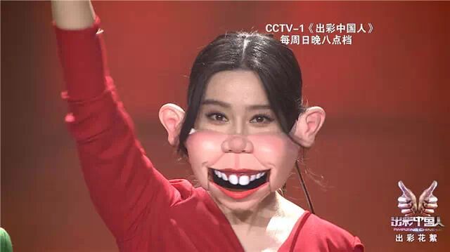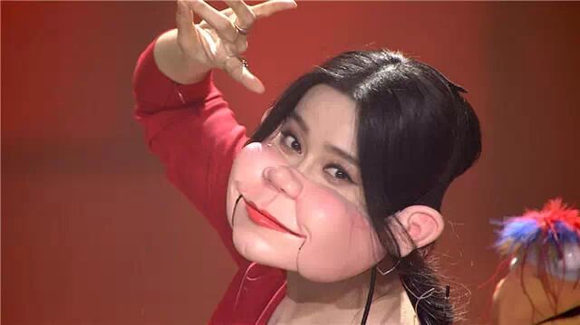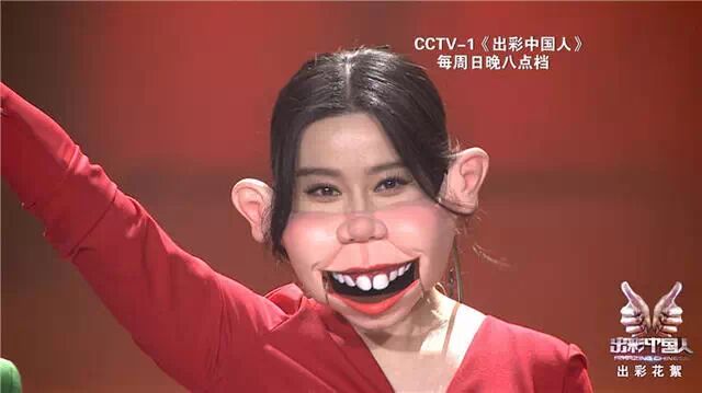 近日,范冰冰参加《出彩中国人》节目时,不惜放弃女神形象,戴上夸张的猪头面具扮丑。惹得全场顿时一片沸腾。图为范冰冰在节目中戴着猪面具。