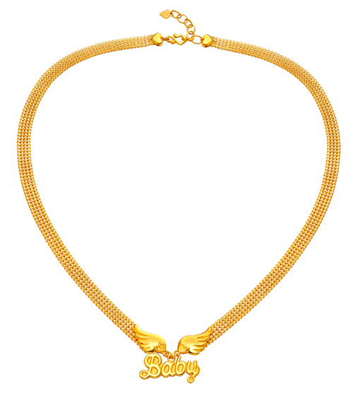 尚金缘“一表真情”系列,以甜蜜浪漫的Baby和翅膀为见证,感恩母亲每一秒的温情与挂念。产品链身运用精密的意大利设备制成,将多条正反S形“心相印”项链层层叠加,打造成漂亮的排链,造型独特之余,更营造出前卫摩登的视觉感受。同时,因为单条“心相印”项链本身呈S形的原因,促使整体链身呈现出爱心交叠的效果,象征了母子同心的情感表白。