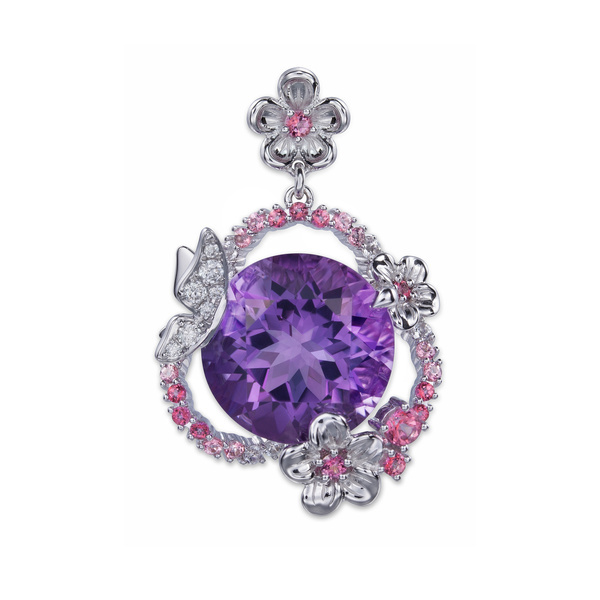 Message of Flowers系列是作为母亲节礼物的另一个理想选择。此系列以生气勃勃的迷人花园为灵感,传递出欢乐、希望与活力,好比孩子在母亲的悉心呵护下快乐成长。花朵和蝴蝶是最佳拍档,正好用来比喻母亲与儿女之间的亲密关系,而充满诗意的18K金Joyful链坠便巧妙诠释这种无可取代的感情。链坠中央镶嵌了一颗逾5克拉的圆形紫晶,且花朵造型的饰框通过密镶方式,缀有色彩渐变的托帕石,及瞩目耀眼的蝴蝶和花朵装饰﹔同样细节亦见于18K金Joyful耳环,既为赏心悦目的紫色增添闪亮魅力,又提升了整体设计的高贵格调。揉合出色设计与非凡工艺的Joyful珠宝,将母亲和孩子相依相爱的动人情感演绎得淋漓尽致﹗