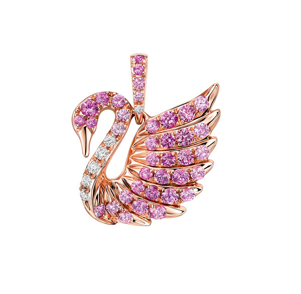 LOVE PARADISE为题的Graceful Swan系列,以象征纯洁优雅的天鹅造型,打造出多款华丽细腻,并适合日常佩戴的珠宝,作为对母亲无微不至的爱致以衷心感激。高贵精巧的Mini Swan吊坠,有18K玫瑰金配以钻石和粉红蓝宝石、18K金配以白色钻石,及18K金配以黑白色钻石三种设计。每款作品均表现品牌精湛的工艺,展现与众不同的美感之余,更可让佩戴者按照个人的风格喜好随意搭配。如以两枚Mini Swan吊坠,配以不同长度的项链,便能营造格外诱人别致的效果。