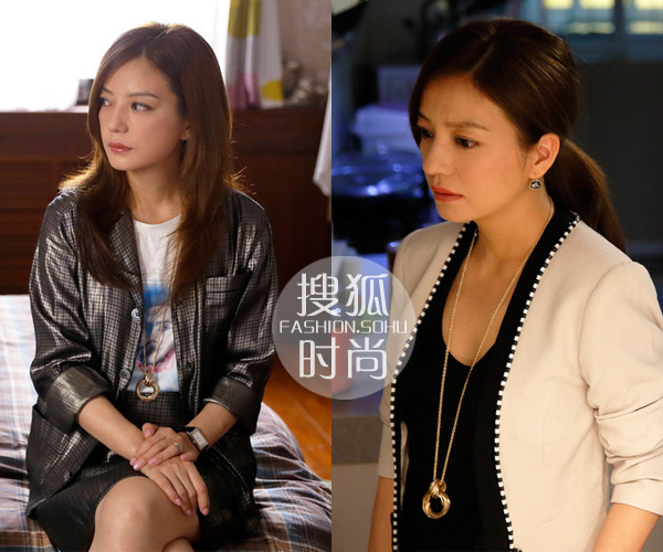 这件项链在剧中多款造型中出现,金色长链配环状层搭吊坠,活力时尚又有点小华丽,完美契合OL形象。