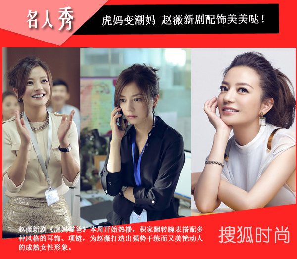 虎妈也要美美哒!电视剧《虎妈猫爸》本周开始热播,女主赵薇从当年活泼可爱的小燕子转型为追求完美、霸气外漏的现代虎妈毕胜男,不过"虎"说的是个性,在造型上可一点都不马虎。积家翻转腕表搭配多种风格的耳饰、项链,为赵薇打造出强势干练而又美艳动人的成熟女性形象。