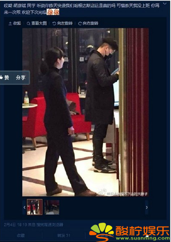 今年1月——2月,胡彦斌频繁出现在杭州,粉丝怀疑其有杭州女友。巧合的是,当时郑爽正在杭州拍摄《相爱穿梭千年》。随后又有网友曝出两人住同一家酒店的记录,这让大家更加确信两人的恋情为真。