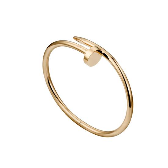 卡地亚Juste un Clou系列18K玫瑰金手镯 参考价格:55,500 CNY推荐理由:能够满足日常着装搭配,才称的上是“基本款”珠宝。以钉子造型为设计风格的Juste un Clou系列,诞生于上世纪七十年代,展现着纽约摩登的独立精神。这是卡地亚LOVE系列的设计师 Aldo Cipullo的再度诠释,将现代气息与大胆创意融为一体。Juste un Clou的钉子造型也满足了时尚代名词中的“个性”元素,将五金器具的模型通过大胆的设计,打造出了相同风格的手环、戒指及吊坠等,同样配有18K黄金、18K白金及18K玫瑰金等大小不一的款式。