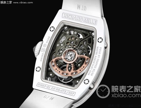 rm 07-01是圣卓佩兹系列中的首款女装腕表。这款腕表材质新颖,造型优雅:白色陶瓷表壳、白色橡胶表冠、天青色表盘搭配蓝色(与法国里维埃拉地区的色彩相呼应)刻度圈。表款内搭载一枚理查德米勒自主研发设计的crma2高度镂空自动上弦机械机芯,性能稳健,并配备50小时动力存储。rm 07-01圣卓佩兹马球俱乐部女装腕表限量发行20枚。