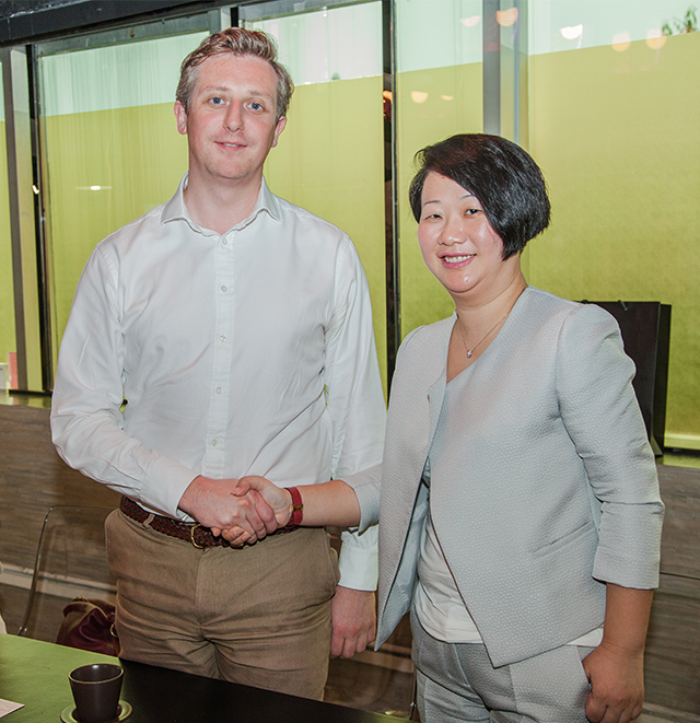广东省沃土企业成长研究院常务副院长李玮女士及钻石世家董事长陈小凤女士与Andrew Dunbar先生进行座谈交流