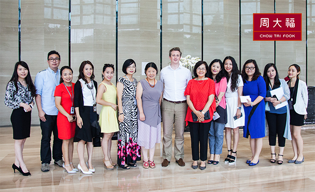 Andrew Dunbar先生与周大福策略伙伴关系总经理刘璞女士及周大福高层代表、J.I.A珠宝创新联盟团队合影