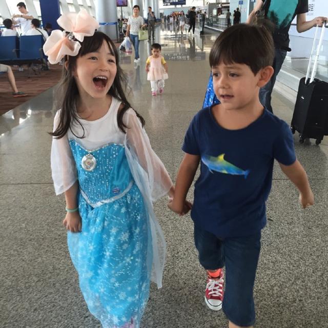 夏天有着一颗公主心,日常的裙子很多也是闪亮的迪士尼公主裙,再牵上同样是混血小王子的诺一的手,走在路上真是养眼呢。夸张的发饰或许不适合成年人,可是小孩子戴就会萌感up哟。看夏天头上戴的超大版蝴蝶结,是不是也很和谐呢?