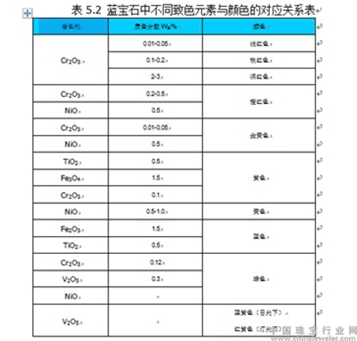 蓝宝石中不同致色元素与颜色的对应关系表表格来源于《世界主要彩色宝石产地研究》