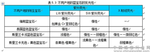 不同产地的蓝宝石的发光性表格来源于《世界主要彩色宝石产地研究》