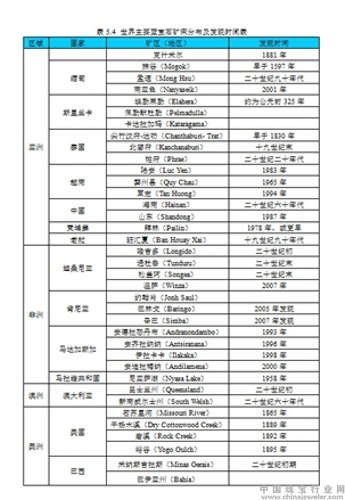 世界主要蓝宝石矿床分布及发现时间表表格来源于《世界主要彩色宝石产地研究》