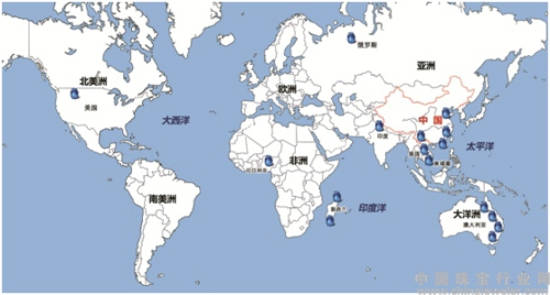 世界主要蓝宝石产地分布图图片来源于《世界主要彩色宝石产地研究》