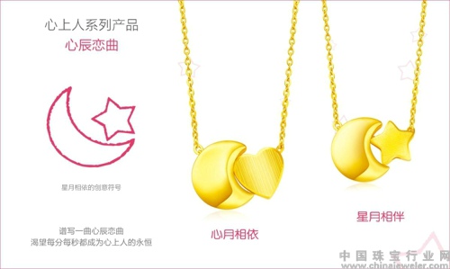 恋人的甜蜜时刻永远不惧距离,即便星辰相隔再远,未来,他们终将他们相遇。浪漫故事的第二篇章将为你演奏不一样的协奏曲。在设计上,着重表现星辰与日月。心续与明月间甜蜜的交汇。仿佛在心与心之间搭起了恋人的鹊桥,在金丝艺工艺之下,『心辰恋曲』系列明暗交错,(心)星辰朴实醇厚,月牙明亮皎洁,更显男女双方质朴美好的爱情向往。