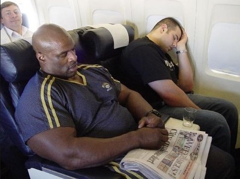 很显然,这个扶手是设计出来让大家分享的,如果可能的话,你们可以轮流使用。不过,如果坐在你身边的是个300磅重、浑身肌肉的野蛮汉子,扶手归他。就像这张图一样: