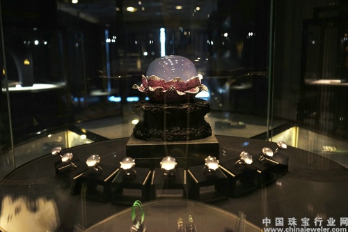 如果说“昭仪之星”是立足于绝世原料,充分焕发天地巧思的光彩,使用人力为其增彩,把翡翠文化推向新的高度,为整个翡翠行业开创历史的先河之作。那么同“昭仪之星”一起亮相西子湖畔的“花丝镶嵌”臻品则堪称中国传统之美、现代设计之美与国际潮流之美的完美融合。